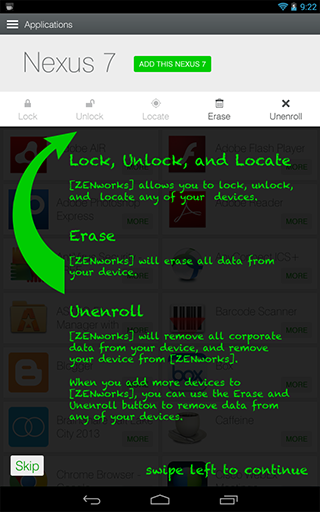 GroupWise ZENworks Mobile Solution:Novell ZENworks tracks, manages, and protects an organization’s client devices and applications. A request was made to prototype a mobile management solution. I designed, and developed a Web application prototype, complete with a tutorial to minimize training, and inform new users what each action will do so the users are comfortable using the application.
