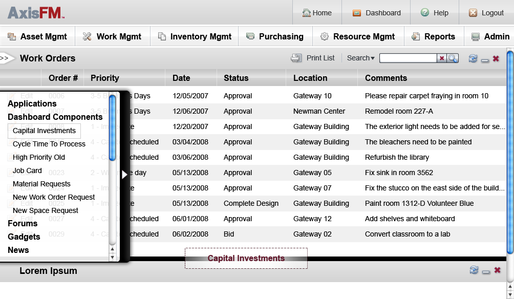 AxisFM Solution:AxisFM was initally built on a software solution that disabled it from moving into Web 2.0 Web application development space. AxisFM needed to take advantage of the newer technologies available and be updated as well. I designed, mocked up, and prototyped, a new rebrandable, Web application that enabled more powerful features, navigations, dashboards etc. to move the AxisFM application into the 21st Century.